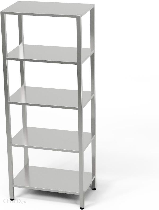 Grubość blachy 0,8 do 1 mm. Regał ma 5 półek i przeznaczony jest do przechowywania żywności lub naczyń. Solidna konstrukcja i wzmacniane półki o dużej nośności umożliwiają przechowywanie produktów nawet do 75 kg na każdej półce (przy równomiernie rozłożonym ciężarze). Konstrukcja regału opiera się na kształtownikach o przekroju zamkniętym. Półki stałe.
