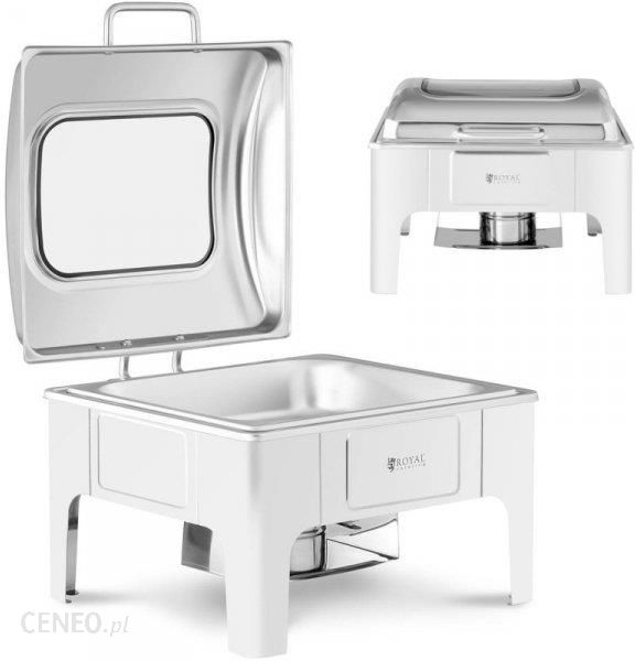 Kod producenta: 10012410Podgrzewacz do potraw marki Royal Catering sprawdzi się w hotelowych bufetach oraz na imprezach z cateringiem. Wykonany został ze stali nierdzewnej, solidnej i nie wchodzącej w reakcje z żywnością. Posiada dużą pojemność 5,3 l, dzięki zastosowaniu pojemnika GN 2/3 o wymiarach 355 x 325 mm. Żaroodporna rączka zapobiega poparzeniu. Pokrywa jest odchylana, co ułatwia nakładanie żywności. Okienko z hartowanego szkła umożliwia podgląd zawartości bez konieczności otwierania. Dołączony pojemnik na paliwo posiada pokrywę ułatwiającą gaszenie płomienia. Pojemnik z pastą instalowany jest bezpośrednio pod dnem zbiornika wody o wielkości 395 x 365 x 95 mm. Kąpiel wodna podgrzewa potrawy i zapobiega ich przypaleniu.Cechy produktu:- Do utrzymywania w cieple potraw, – Kąpiel wodna nie przypala żywności,- Równomierne rozprowadzanie ciepła utrzymuje wysoką temperaturę przez długi czas,- Stabilnie umiejscowiony pojemnik na paliwo,- Łatwy w czyszczeniu i użytkowaniu.Parametry techniczne:- Model – RCCD-RT14_6L- Nr katalogowy – 10012410- Stan artykułu – Nowy- Napięcie [V] – — Pojemność [l] – 5,3- Rodzaj pojemnika – GN 2/3- Głębokość pojemników na dania [mm] – 65- Materiał obudowy – Stal nierdzewna, szkło hartowane- Wymiary pojemnika na dania [mm] – 355 x 325- Pojemność pojemnika na wodę [l] – 8,9- Liczba pojemników na paliwo – 1- Materiał pojemnika – Stal nierdzewna- Wymiary wewnętrzne pojemnika na wodę [mm] – 395 x 365 x 95- Pojemniki na dania – Tak- Uchwyty boczne – Nie- Pojemniki na pastę – Tak- Pasta w zestawie – Nie- Pojemnik na wodę – Tak- Nienagrzewające się rączki – Tak- Podgrzewacz na pastę – Tak- Wymiary (DxSxW) [cm] – 41 x 39 x 30- Waga [kg] – 5,7- Wymiary wysyłki (DxSxW) [cm] – 50 x 43,5 x 35- Waga wysyłki [kg] – 6,9W zestawie:- Podgrzewacz do potraw- Pokrywka- Pojemniki na paliwo- Instrukcja obsługi…
