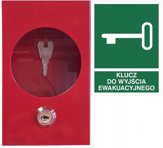 Przedmiotem sprzedaży jest:Skrzynka metalowa na klucz ewakuacyjny z zamkiem ze znakiem fotoluminescencyjnym na sztywnej płycie.widoczna na zdjęciu.Wykonanie standardowe:blacha stalowa lakierowana farbą proszkową poliestrowo-epoksydową. Drzwi z okienkiem.zamek PATENTprzeznaczona głównie do zamocowania przy wyjściu ewakuacyjnym, aby zapewnić możliwość otwarcia zamkniętych drzwi podczas ewakuacji.w razie potrzeby zbić szybkę i wyjąć kluczyk.kasetka bez zestawu montażowegoWymiary skrzynki: 145/90/35 mm (w/sz/g)W zestawie 2 kluczyki.Znak – Klucz do wyjścia ewakuacyjnegoPłyta PCV, fotoluminescencyjny – świecący w ciemności