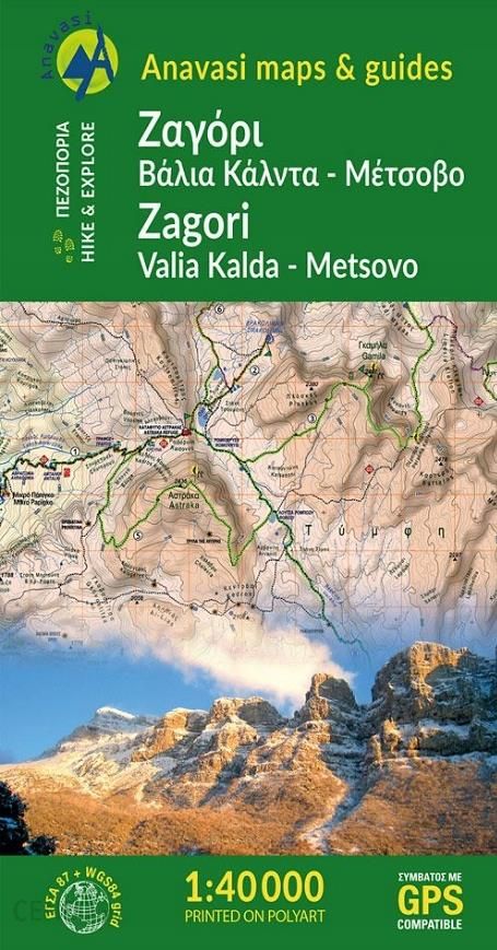 Mapa szlaków turystycznych rejonu Zagori, Valia Kalda i Metsovo w skali 1:40 000.